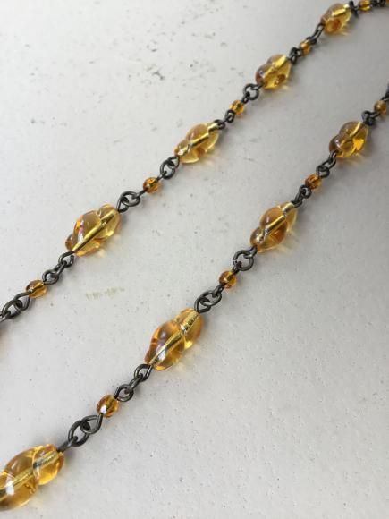 琥珀色のビーズは、1950年代のヴィンテージビーズで素材はガラス。サイズは約13mm。