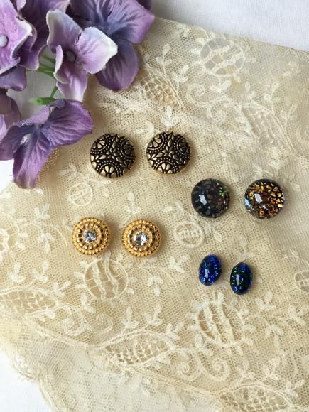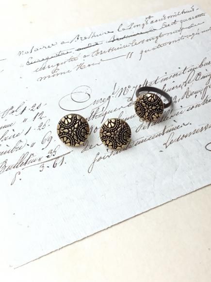 アール・ヌーヴォー風 ヴィンテージボタン ピアスorイヤリング